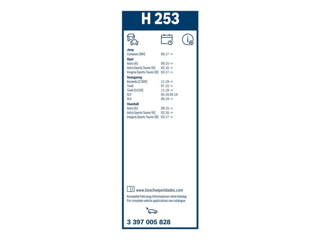 Escobilla limpiaparabrisas trasera Bosch H253 - Longitud: 250 mm - escobilla limpiaparabrisas trasera